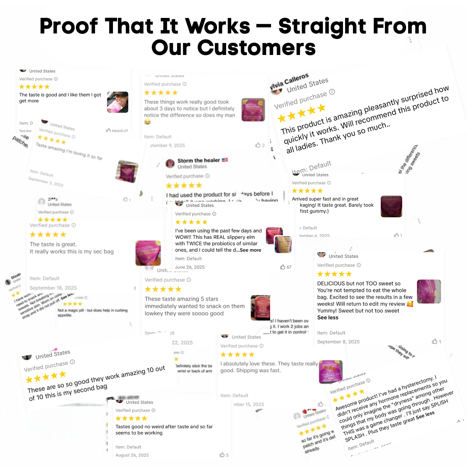 We believe in the transformative results of Slippery Kitty™ so much that we offer a 60-day money-back guarantee. Try it, feel the freshness, and see the difference — and if you’re not completely in love with your results, we’ll give you a full refund. No stress, no risk — just confidence, comfort, and balance.